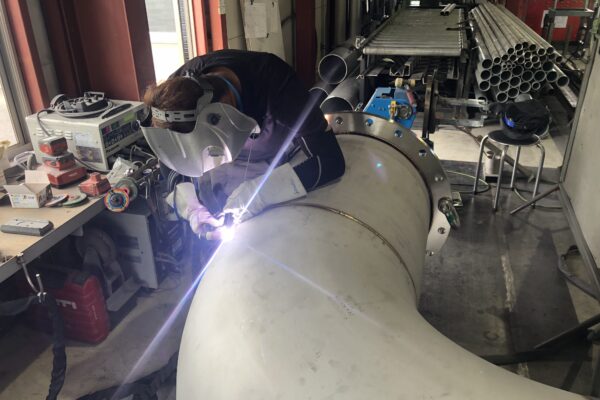 巨大なステンレス配管を隙間なく繋ぐ自社での溶接作業