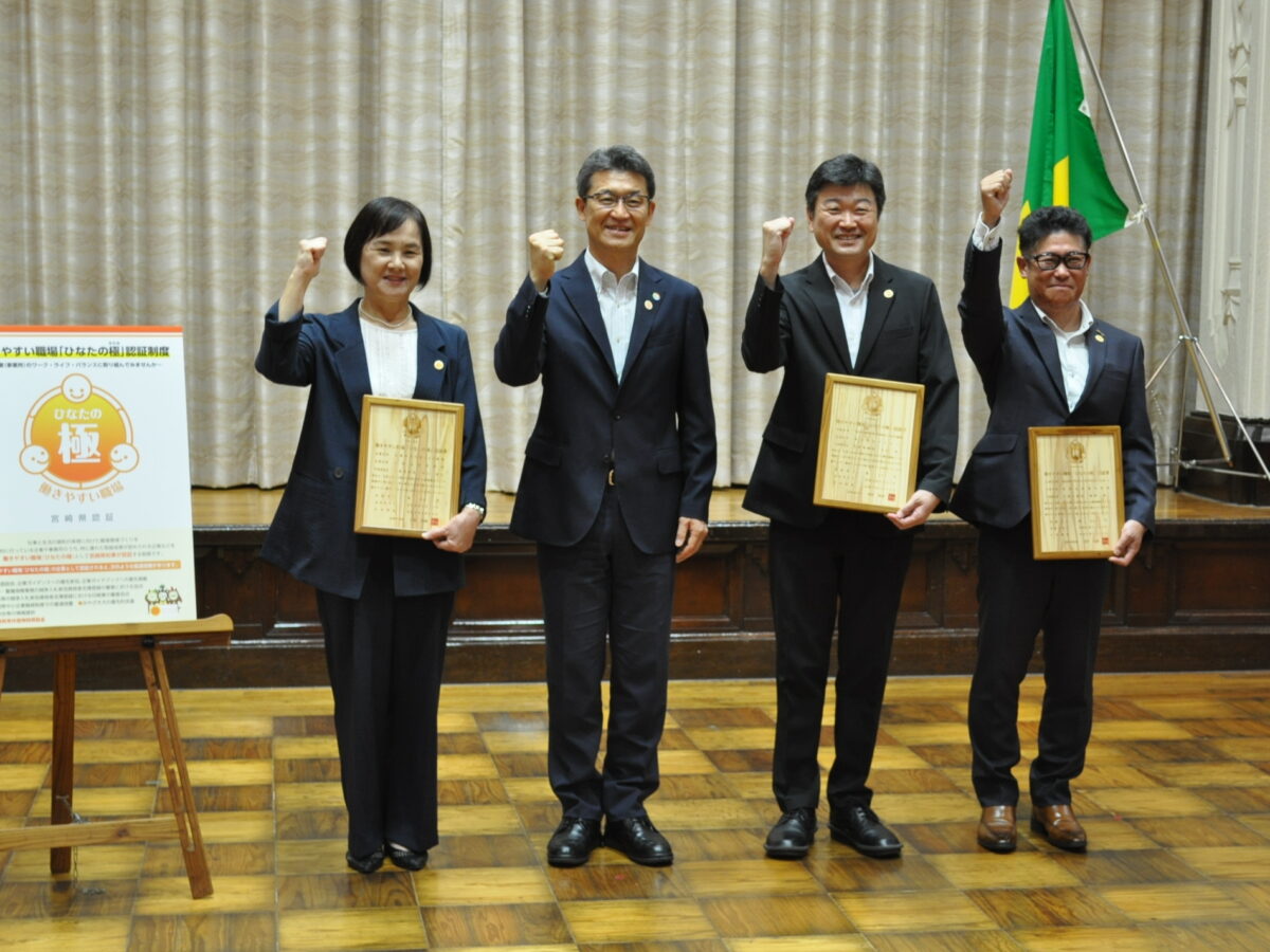 今回は「ひなたの極」の認証書授与式に出席し、河野知事から当社の具体的な取り組みについてご質問をいただきました。